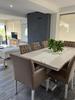 Detalles: aberturas de aluminio doble vidrio, pisos de porcelanato, techos planos, revestimiento tipo tarquini.